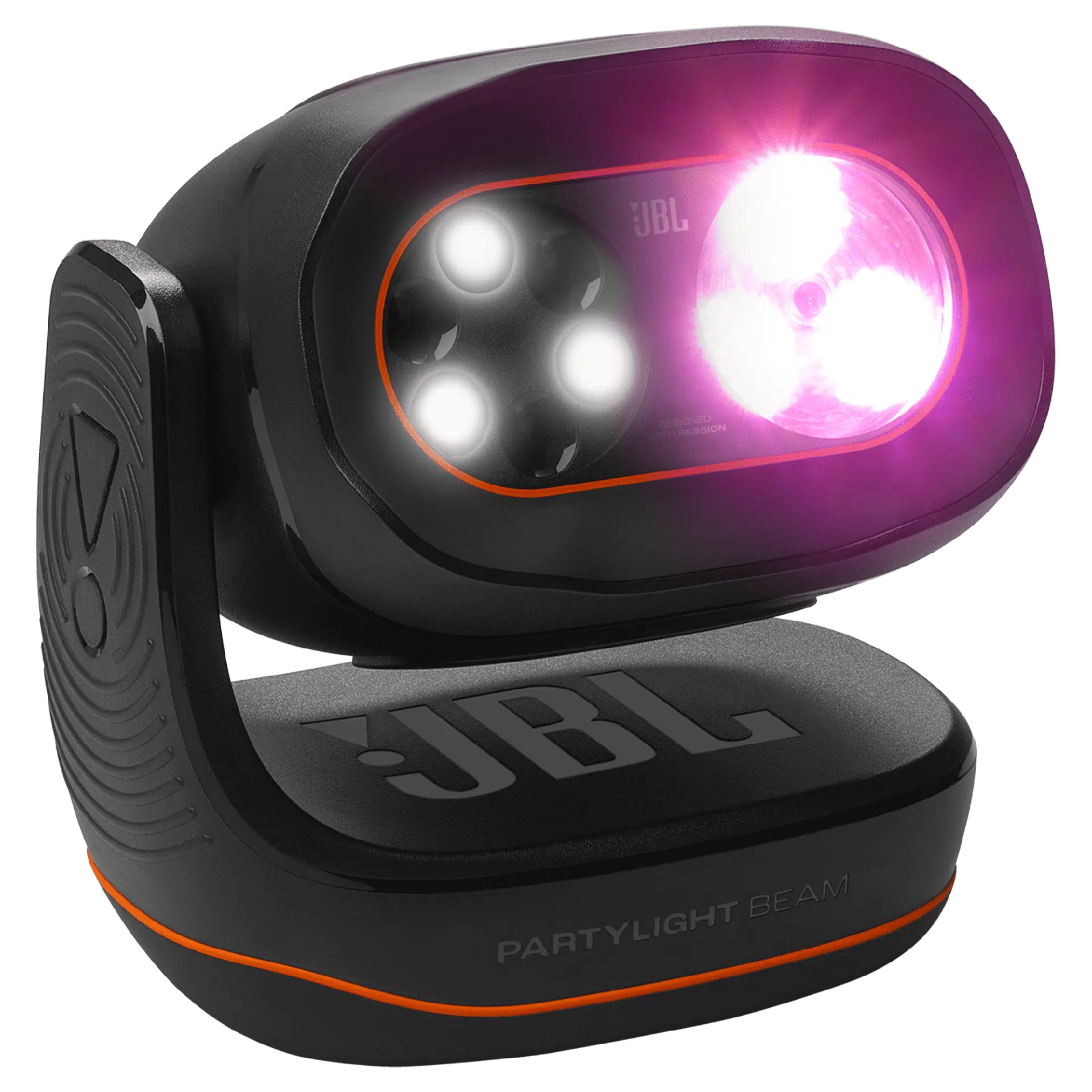 Proyección luz de fiesta Una fiesta inolvidable no solo suena increíble, sino que también debe verse increíble. Ahora puedes escoger tu propio entorno envolvente con el JBL PartyLight Beam. Esta luz se sincroniza de forma inalámbrica con los altavoces JBL PartyBox para proyectar una luz de fiesta colorida y cinética, lo suficientemente grande como para cubrir una amplia habitación, en cualquier pared o techo. (Y si estás de fiesta en un espacio aún más grande, puedes sincronizar varios PartyLight Beams para dar paso a un espectáculo de luces coreografiado en menos de un minuto).
