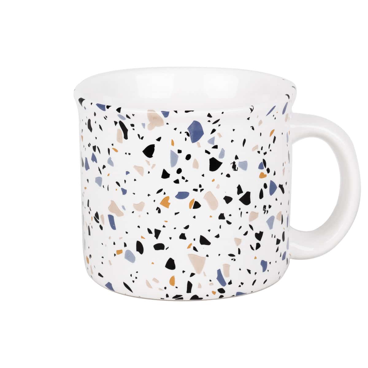 Taza de cerámica pintada con manchitas de colores ideal para amantes del café.