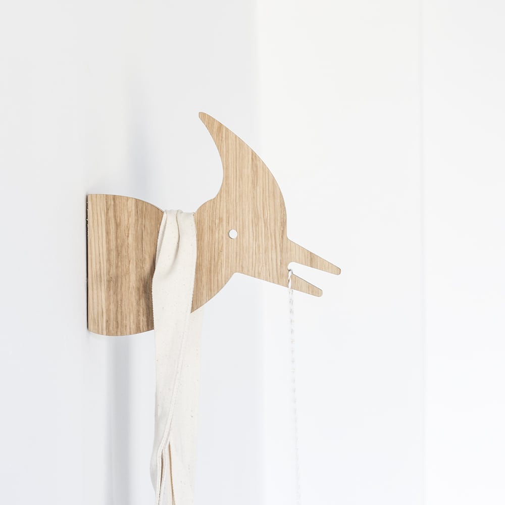 ¿Te apetece tener unos colgadores diferentes y originales? Estos 4 dinosaurios estarán encantados de sujetar las chaquetas y bolsos de toda la familia. Diseñados y fabricados en nuestro taller en madera de roble. Pack compuesto por un Tiranosaurus Rex, un Pterodáctilo, un Triceratops y un Parasaurolofus.