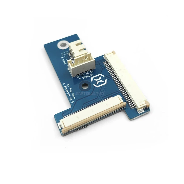 Funcionalidad: Esta placa facilita la conexión y comunicación entre el motor del eje X y otros componentes, como los sensores de fin de carrera (limit switches) y los ventiladores de enfriamiento. Además, proporciona las rutas de señal necesarias para el funcionamiento correcto del eje X​​.